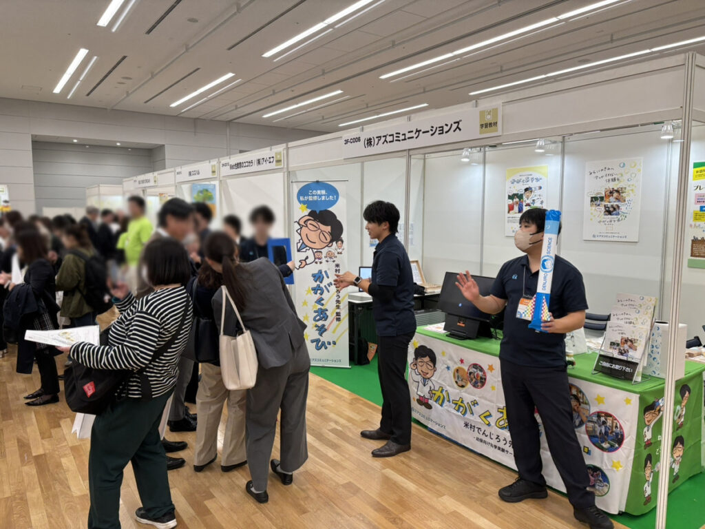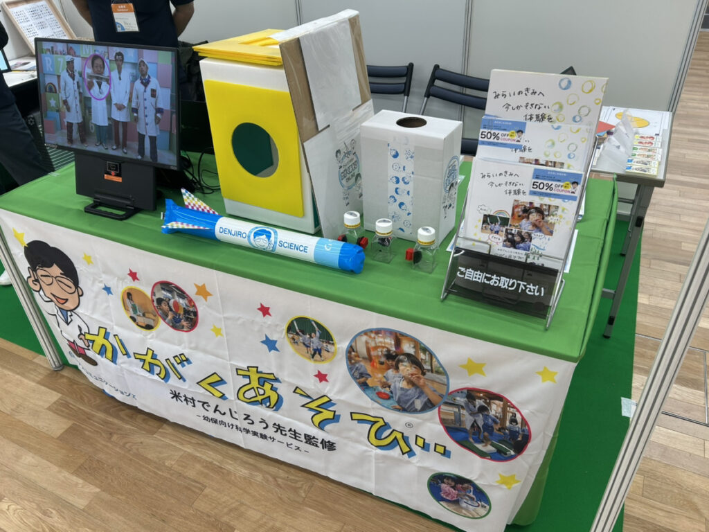 弊社は幼保向け科学実験コンテンツ「かがくあそび」を提供しておりますので、サービス展示のほうで参加しました。200もの企業が出展していますので、会場は大変な賑わいだったようです。