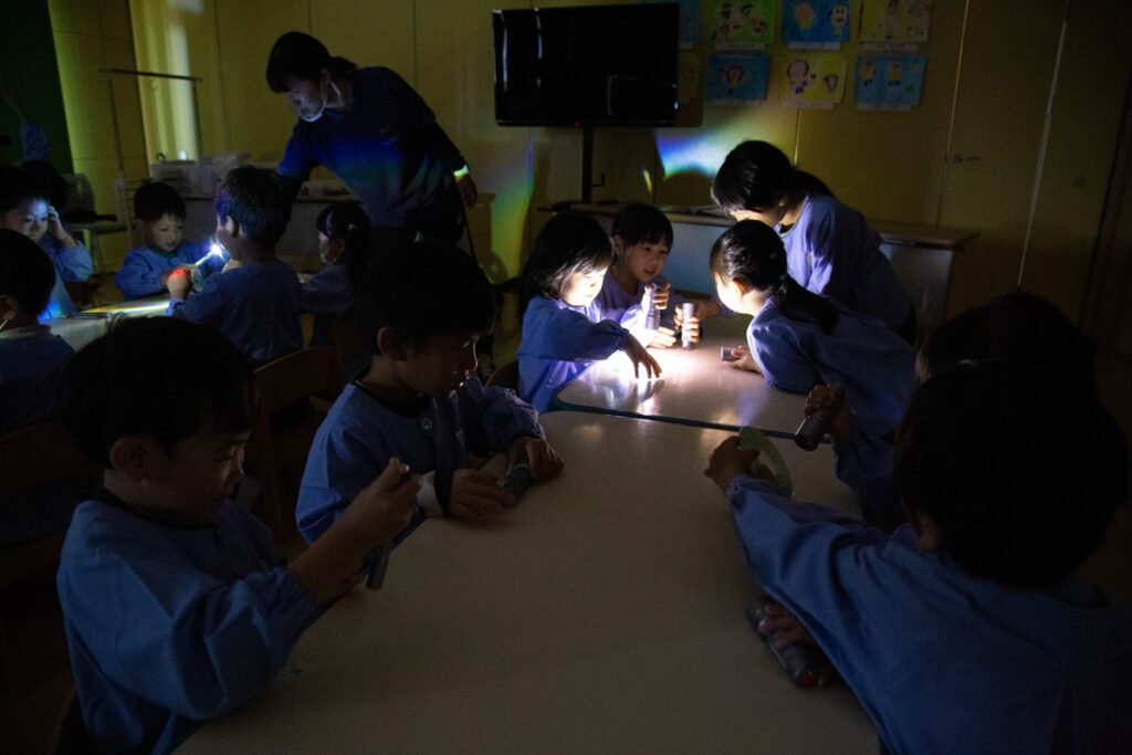 こんな感じで実験をしています☆ お子さんたちも興味津々ですね!
