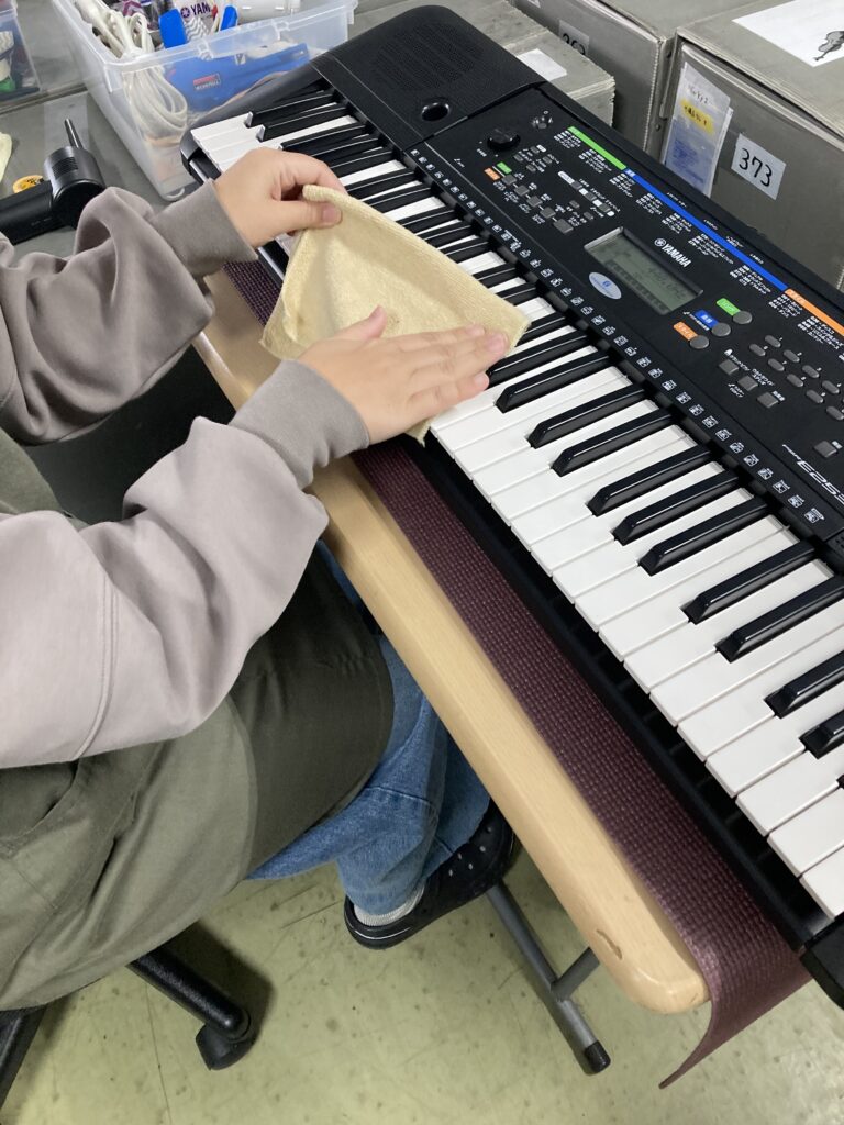 あとはアダプターが断線して使いものにならなくなっていないか、譜面台は割れていないかというのも確認します。キーボードのメンテナンスはほかの楽器と比べてもチェック項目が多いのが特徴かもしれません。たくさんのチェック項目がオールクリアになりましたら、晴れてお客様の手元にお届けすることができます。
