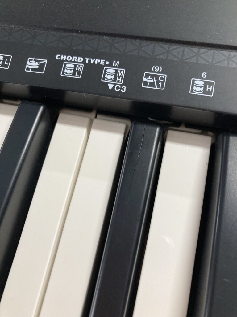 ちなみにこちらが鍵盤の亀裂です。見えますでしょうか?(笑)