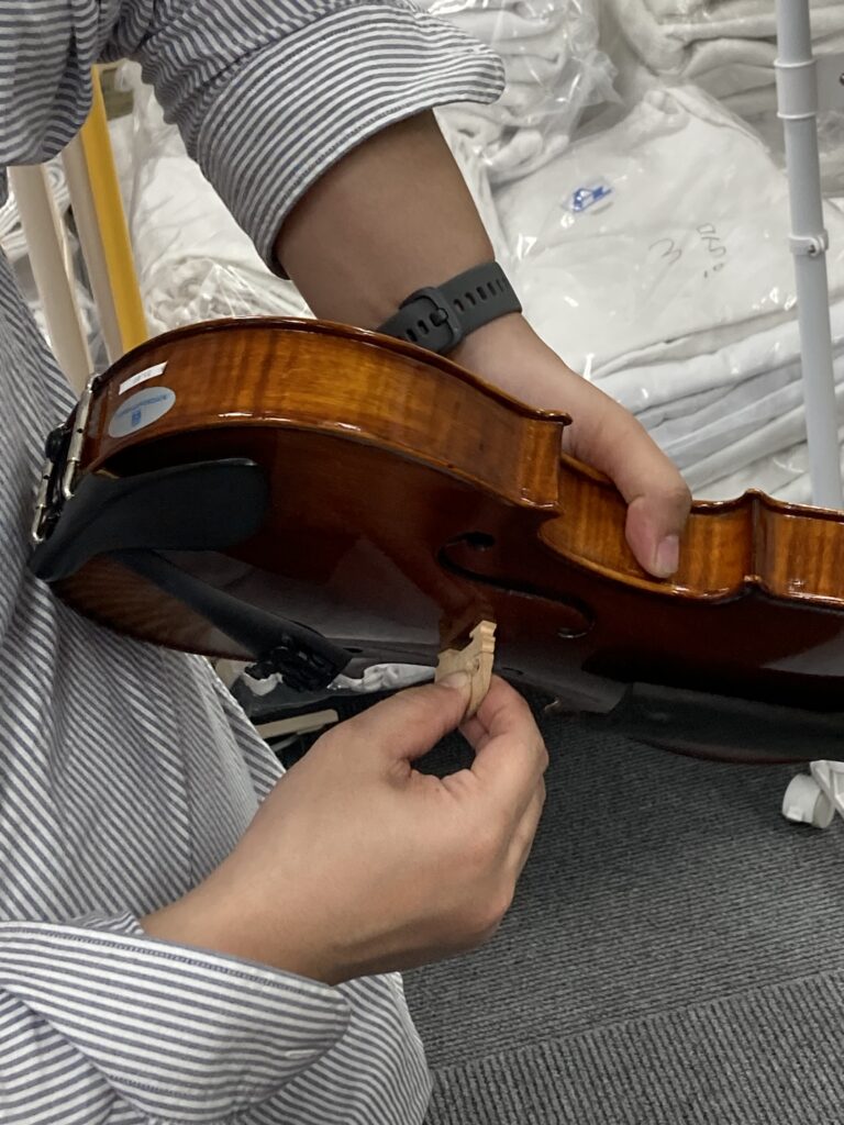 そのほか、楽器の仕入れなどで多岐に渡りご協力をいただいているサクラ楽器さまもお越しくださいました。弊社の事業において、楽器を欠かすことはできません。普段から疑問に思っていたことや楽器運用についてのアドバイスなどを伺うことができました。サクラ楽器さまからは楽器の修理をする職人さんもいらっしゃいましたので、メンテナンスのメンバーはヴァイオリンのリペアについて学んだそうです。