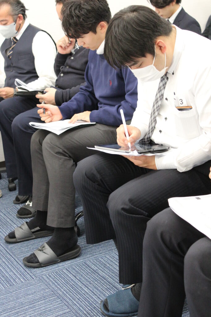 こちらの画像(渡邊が激写した画像です)で何となく雰囲気を感じていただけるかと思いますが、堅苦しい雰囲気ではなく、代表がときにはユーモアを交えながら研修で取り上げているテーマについて解説してくださいます。